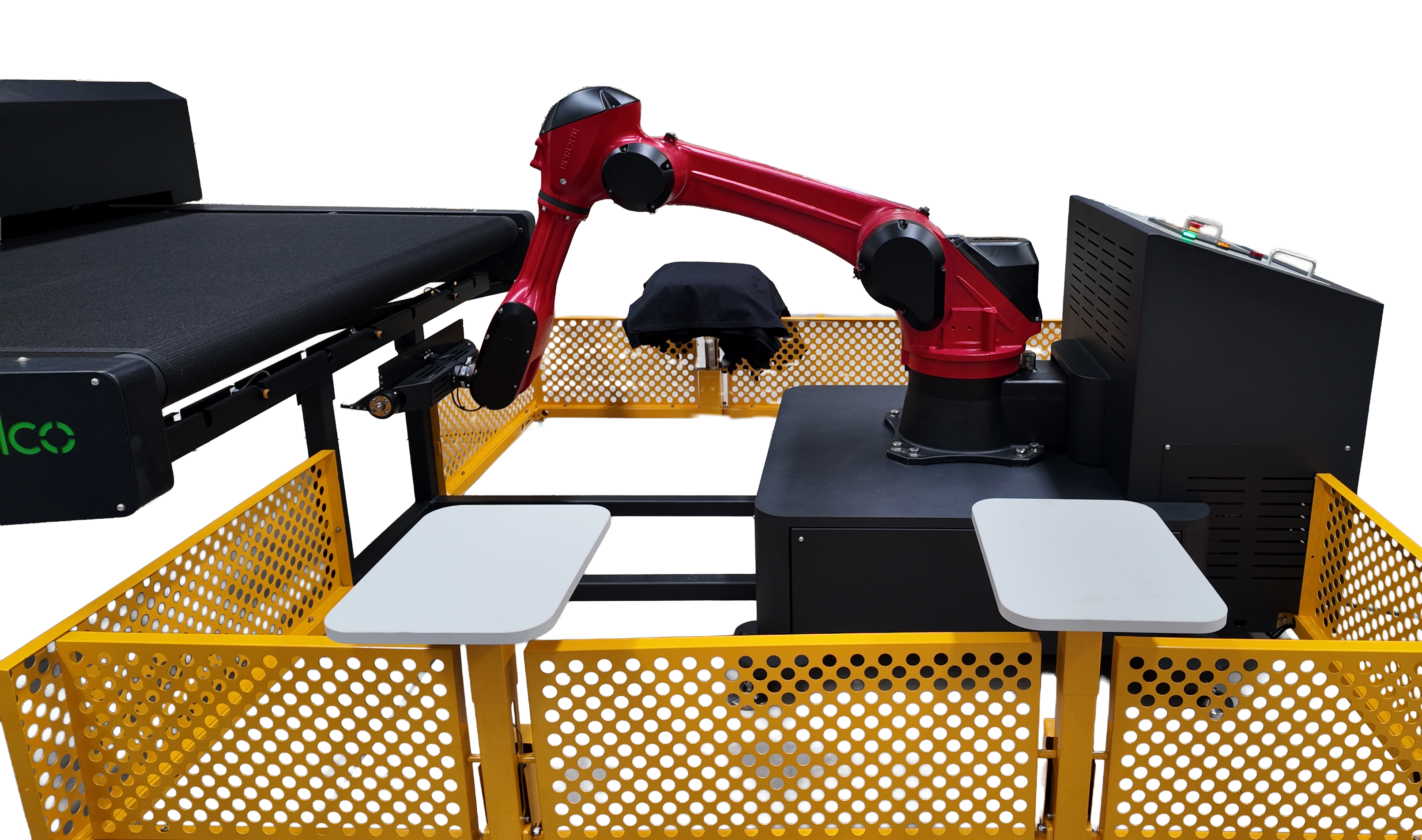 Introducing our innovative robotic arm, specially designed to automate the process of removing printed garments from dryers.